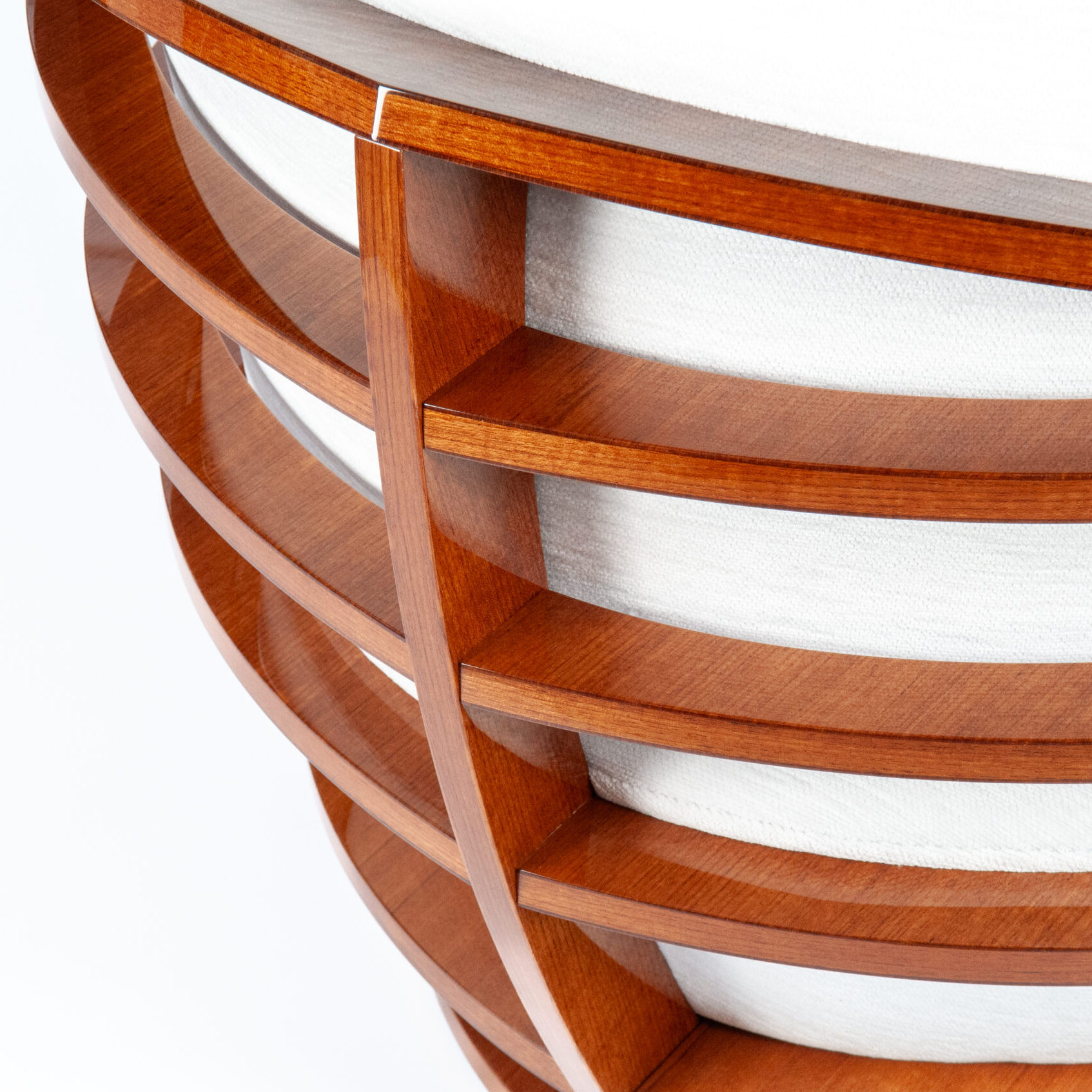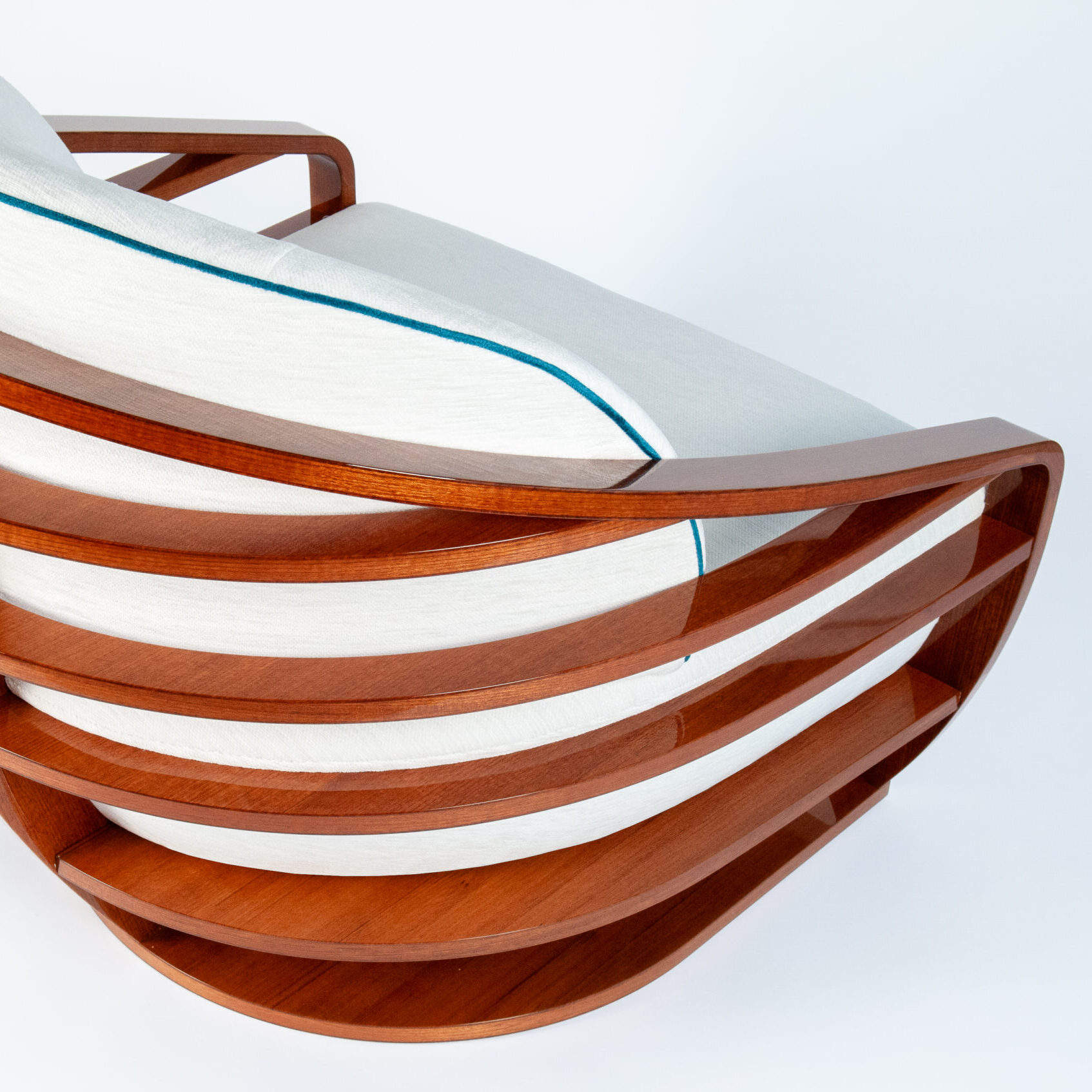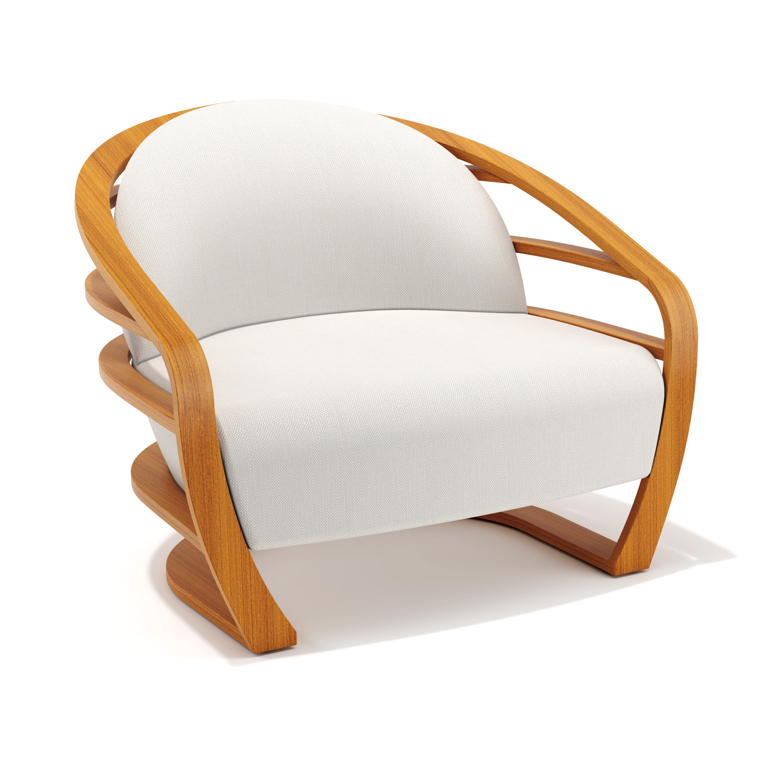 - Curved shell with oiled teak slatted inserts